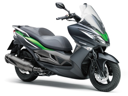 Комплектация Kawasaki J300 оснащена вариаторной коробкой передач, 0.3 литровым двигателем (28 л.с.). Стоимость данного скутера составляет 423 000 руб.